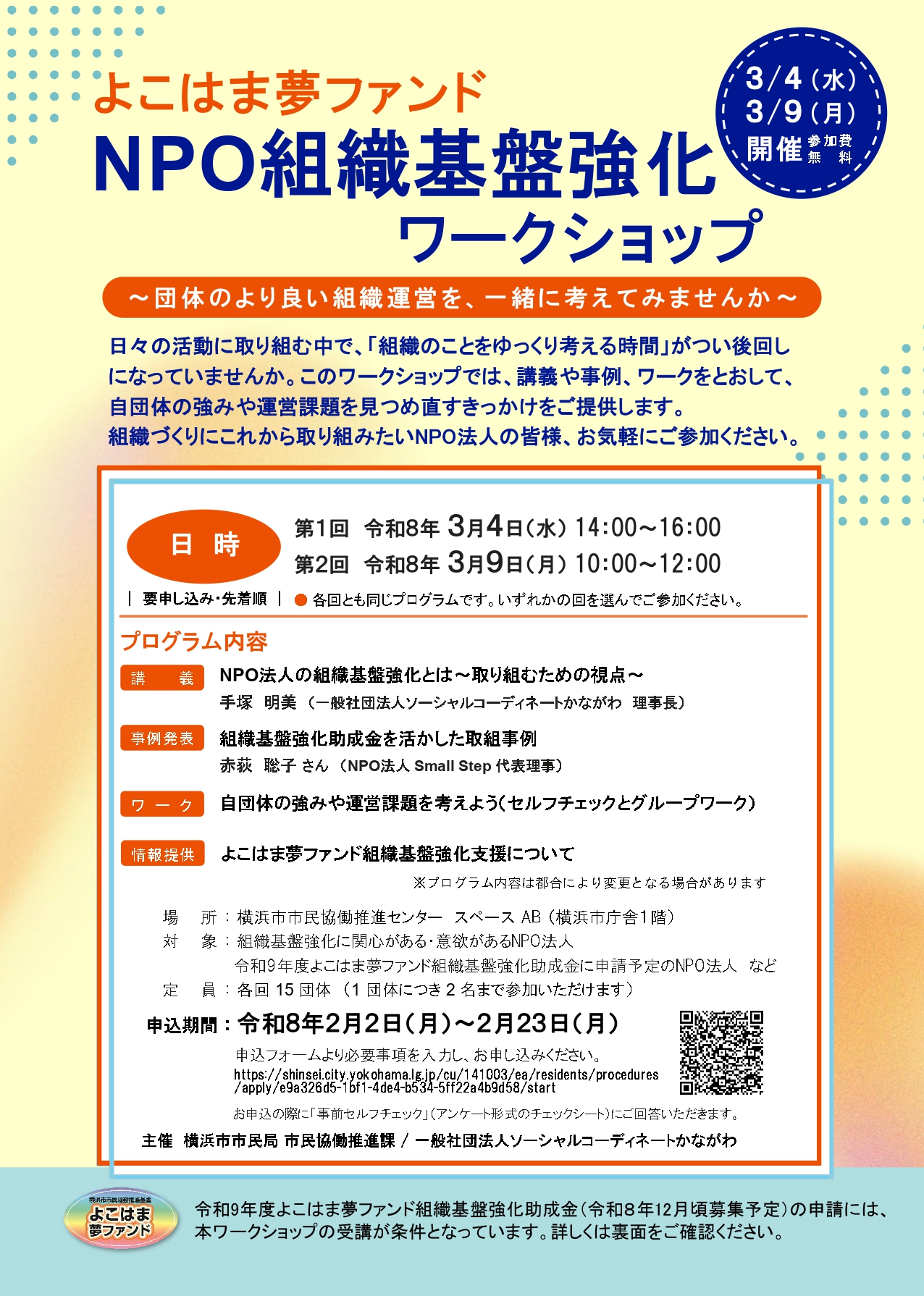 よこはま夢ファンド【NPO組織基盤強化ワークショップ】のご案内